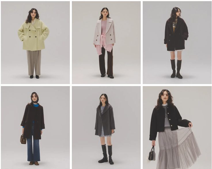 Clean and simple, with a slight feminine touch. It is often chosen for the first commuting clothes because it looks proper without being flashy. The lineup is easy to understand with “on style” for jackets and “off style” for knits and dresses. Sizes are mainly S, M, and L, with some items in XS. A safe but not boring choice for women in their early 20s.